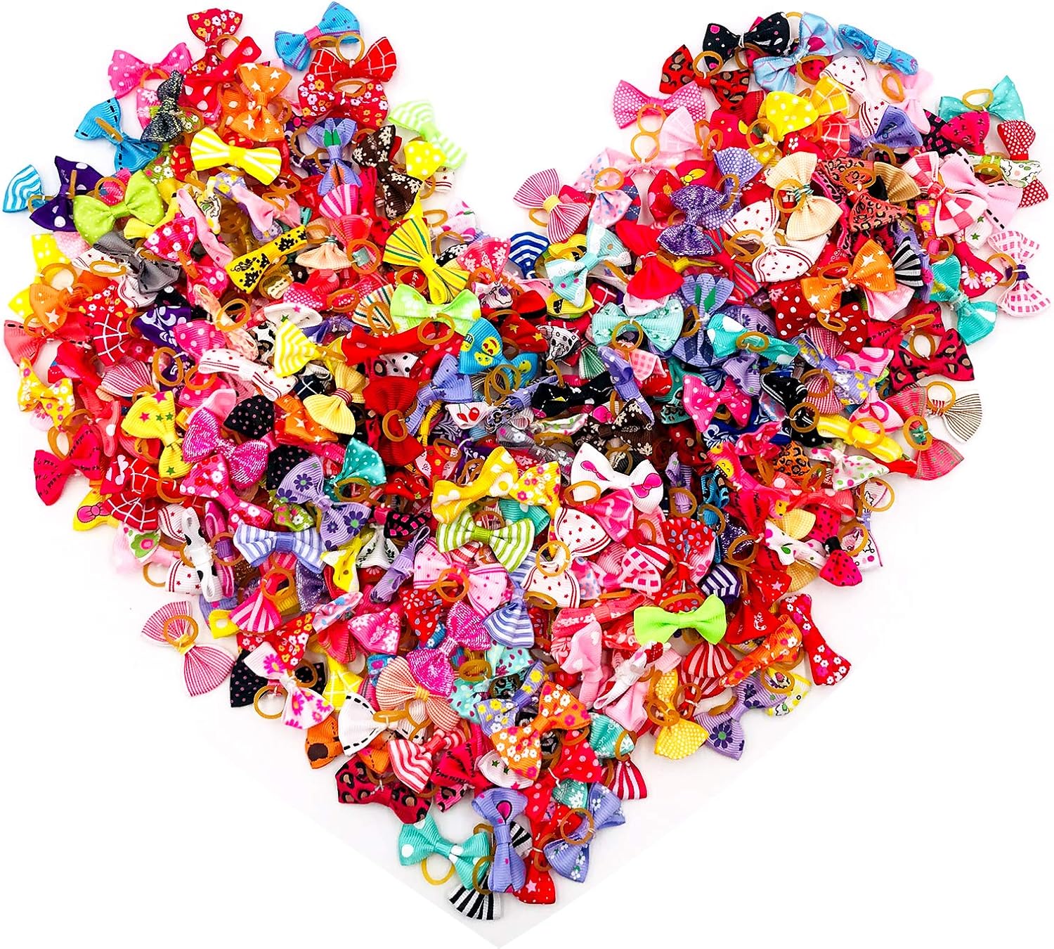 100 PCS DOG HAIR BOWS IN PAIRS – Small dog hair bows have 24 different patterns as picture shows. Great dog hair accessories for groomers and pet owners and shops. Various styles and colors at random.