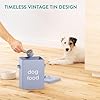 Con su acabado metálico y su etiqueta en inglés, este recipiente comida perros tiene un estilo vintage que combina perfectamente con la decoración del hogar.