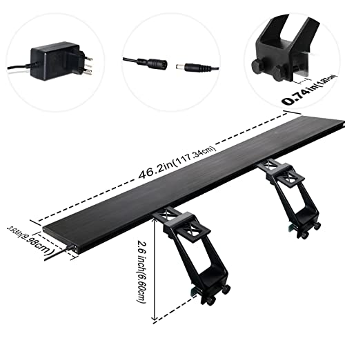 NUEVA ACTUALIZACIÓN: Soporte de estilo clip, fácil de instalar, la luz LED del acuario se puede utilizar para diferentes espesores de vidrio, el cuerpo de la luz del tanque de peces se puede quitar, instalado horizontalmente. El adaptador separable, incluso si está dañado, no hay necesidad de reemplazar toda la luz para evitar el desperdicio. Espesar el aluminio para aumentar la eficiencia de disipación de calor.