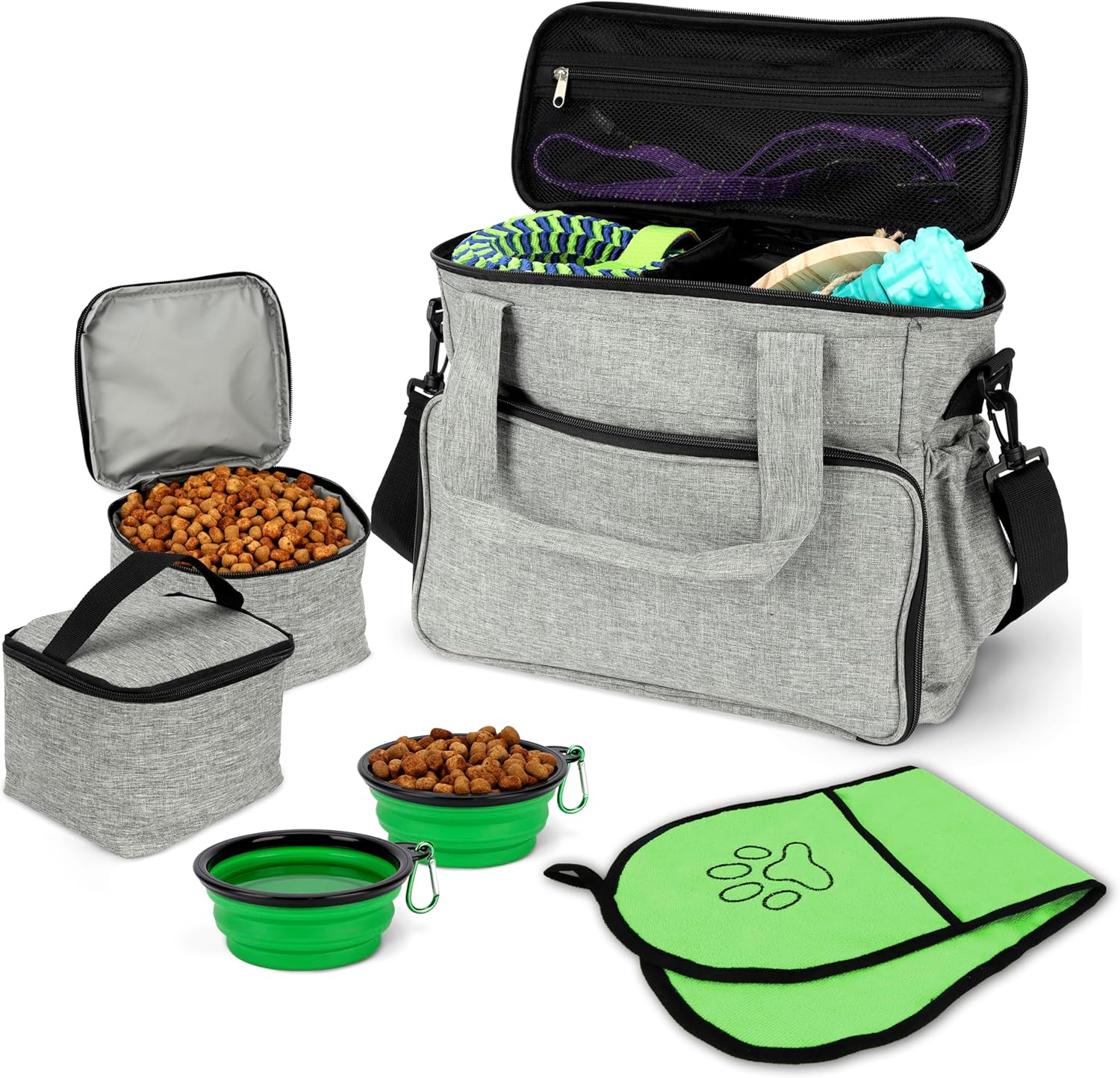 Belle Vous Travel Bag for Dogs with 2 x Folding Feeders.