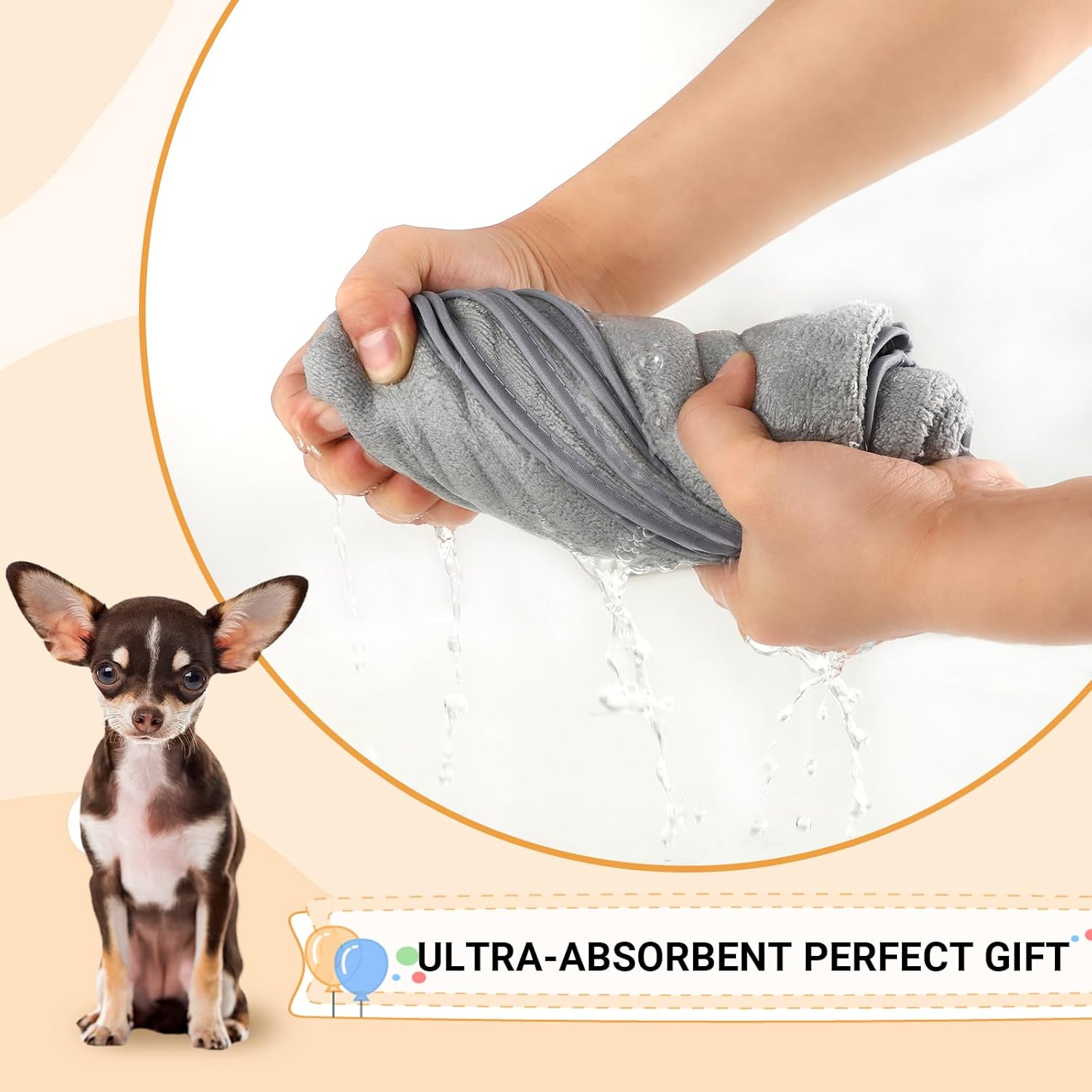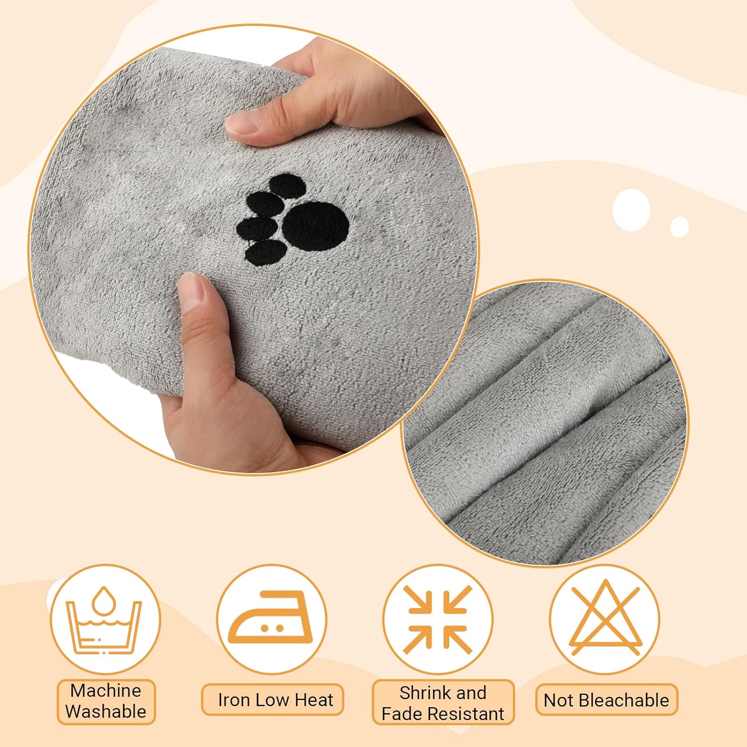 【Premium Material】Made of high density microfiber, it is as soft and delicate as coral and delicately protects pets’ sensitive skin. The towel has excellent physical properties: does not shed hair, does not fade, is resistant to mold and corrosion, and is durable