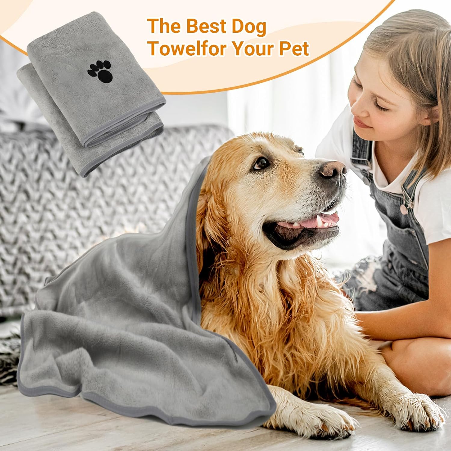 Dog Towels 100 x 50 cm Pack of 2, Large Dog Bath Towels, Microfiber Pet Towels, Quick Dry Pet Towels, Dog Bath Accessories