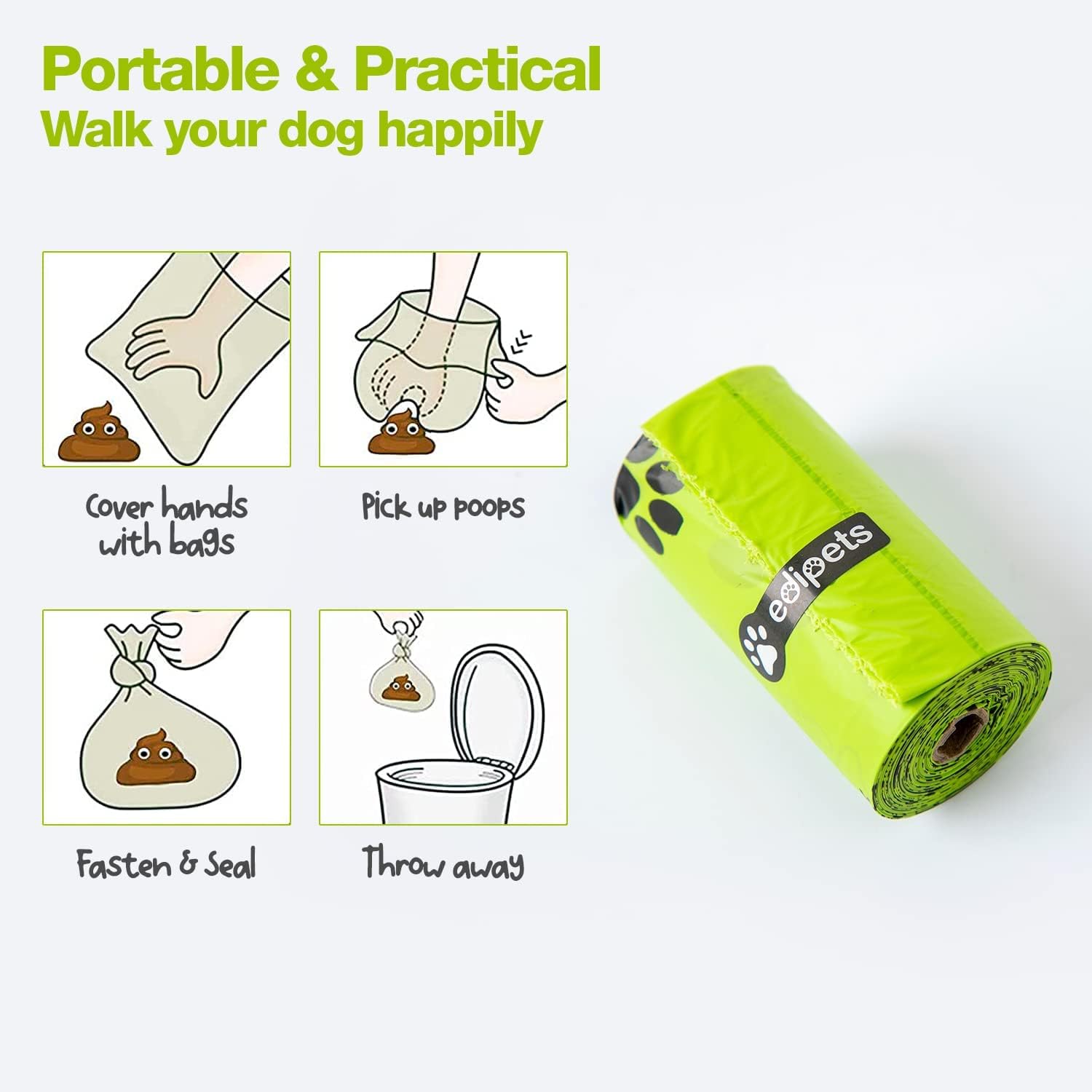 🐾 ENVIRONMENTALLY FRIENDLY: Our dog bags are mostly made up of corn starch, greatly reducing the environmental impact. Not only are the waste bags biodegradable, but also the core roll is made from recycled cardboard.
