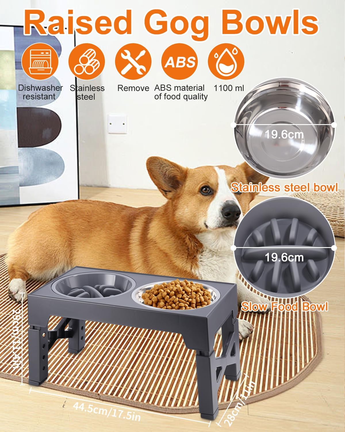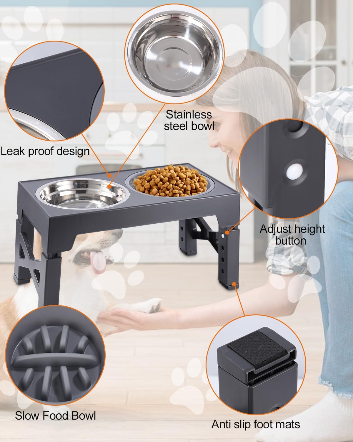 Adjustable Height, 4 Height Designs: The dog bowl can be adjusted to 4 different heights (3.15″, 8.66″, 11.02″, 12.2″), suitable for cats, dogs, rabbits and other different pets. Pets of different sizes, small, medium and large.