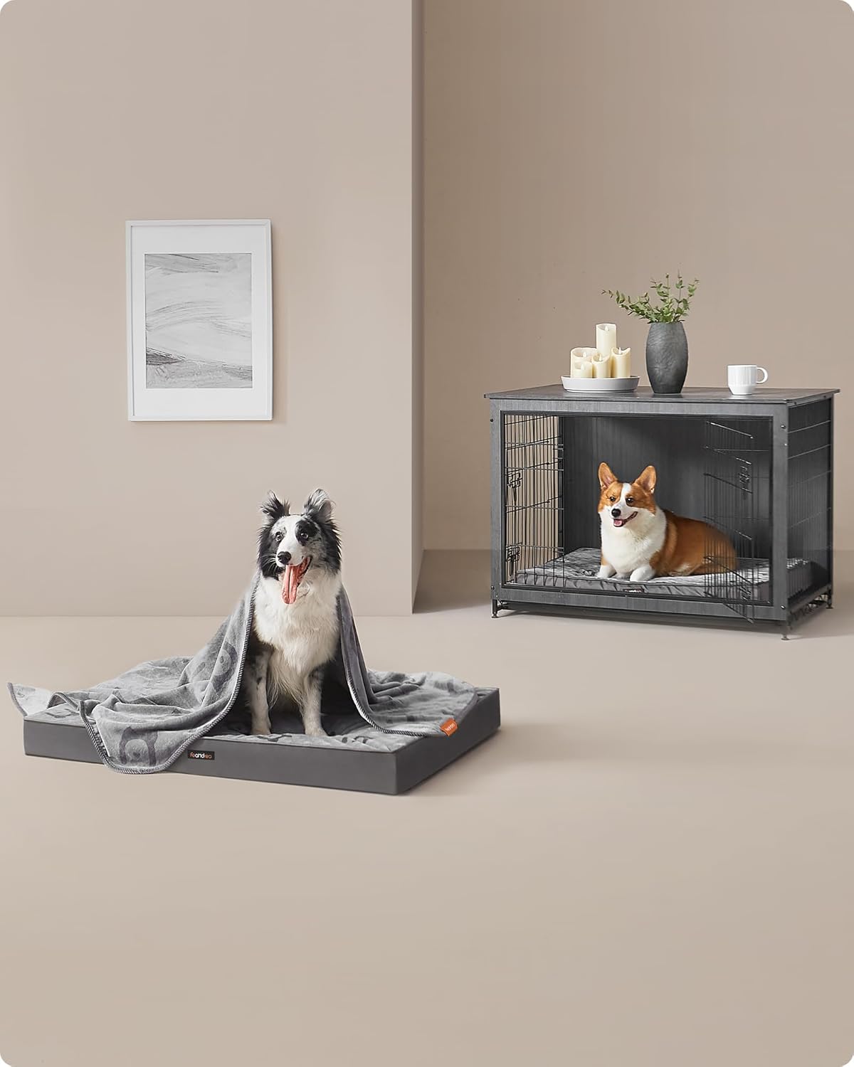 【Practical and Stylish】Equipped with a side handle for easy carrying and zippers for quick and convenient preparation. Feandrea branded icon print adds a touch of style to the dog kennel