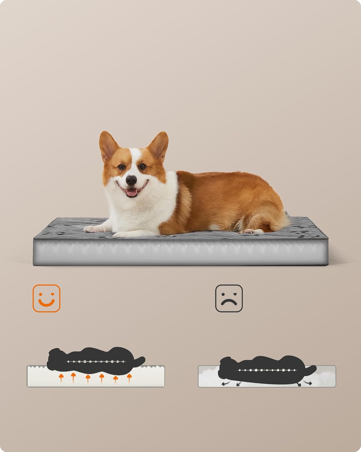 Feandrea PGW242G01 Dog Bed, Pet Bed, Corrugated Foam, Preformed with Handle, Removable, Double-Sided, Waterproof, Size L, 91 x 68 x 8 cm, Dove Grey