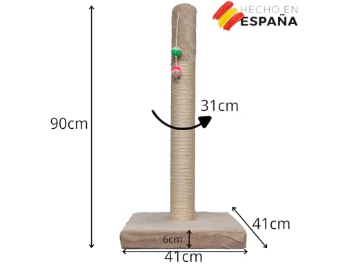 TresGatos Árbol Poste Rascador Gatos grueso Fabricado España Columna Sisal 2 Cascabeles Juguete Mascota