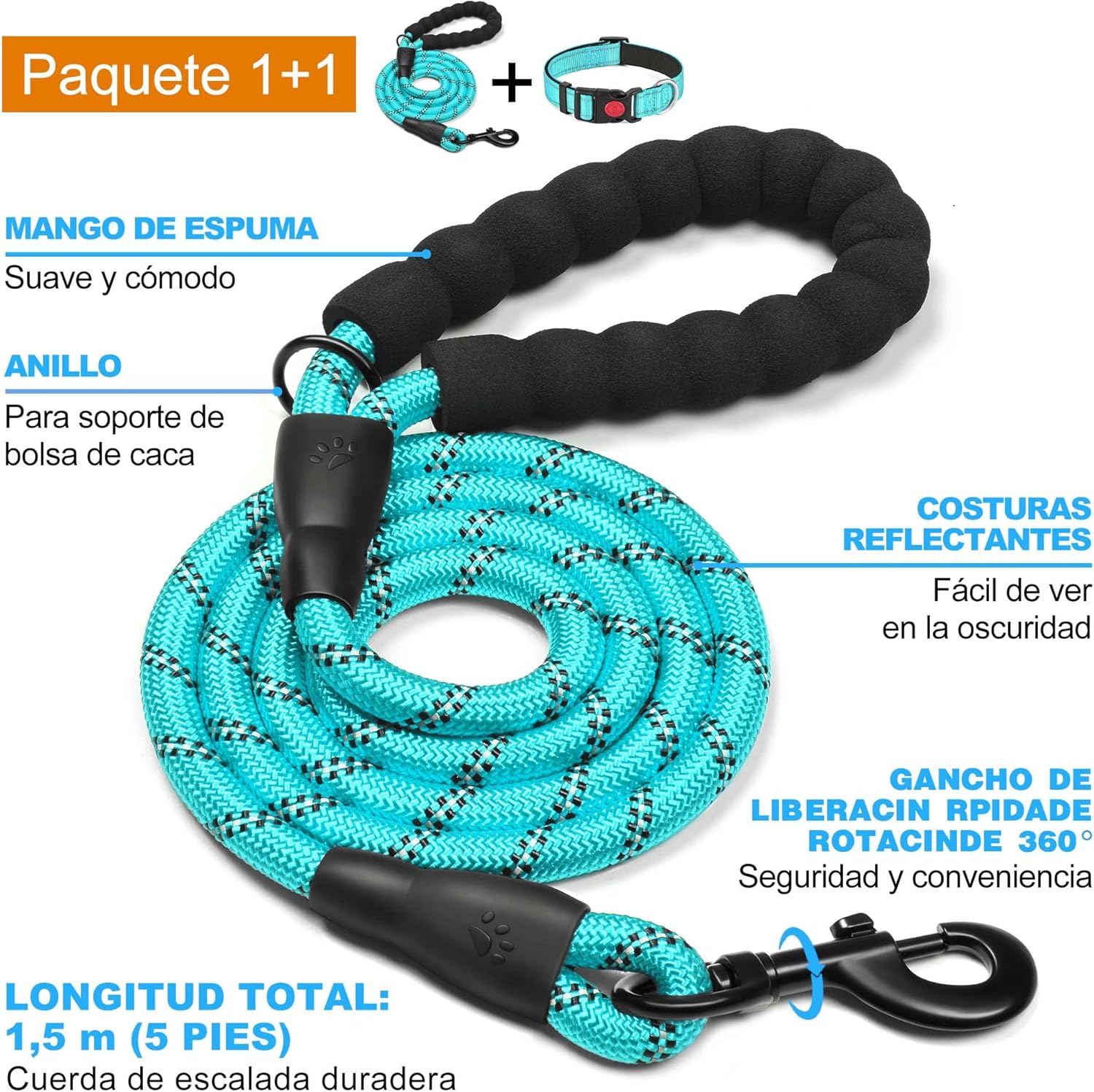 ADDITIONAL DOG LEASH: A FREE 1.5m dog leash is included. Presented with a comfortable foam handle, a strong climbing rope, and a tangle free hook