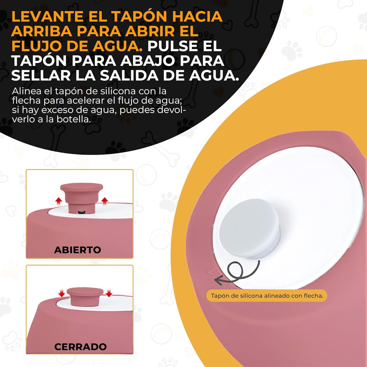 AUTOMATIC DRIP PROOF PREVENTS SPILLING. Thanks to its secure closure system, this leak-proof dog waterer keeps water contained without leaking. Ideal for use in car, train or hiking, avoiding stains on bags and seats.