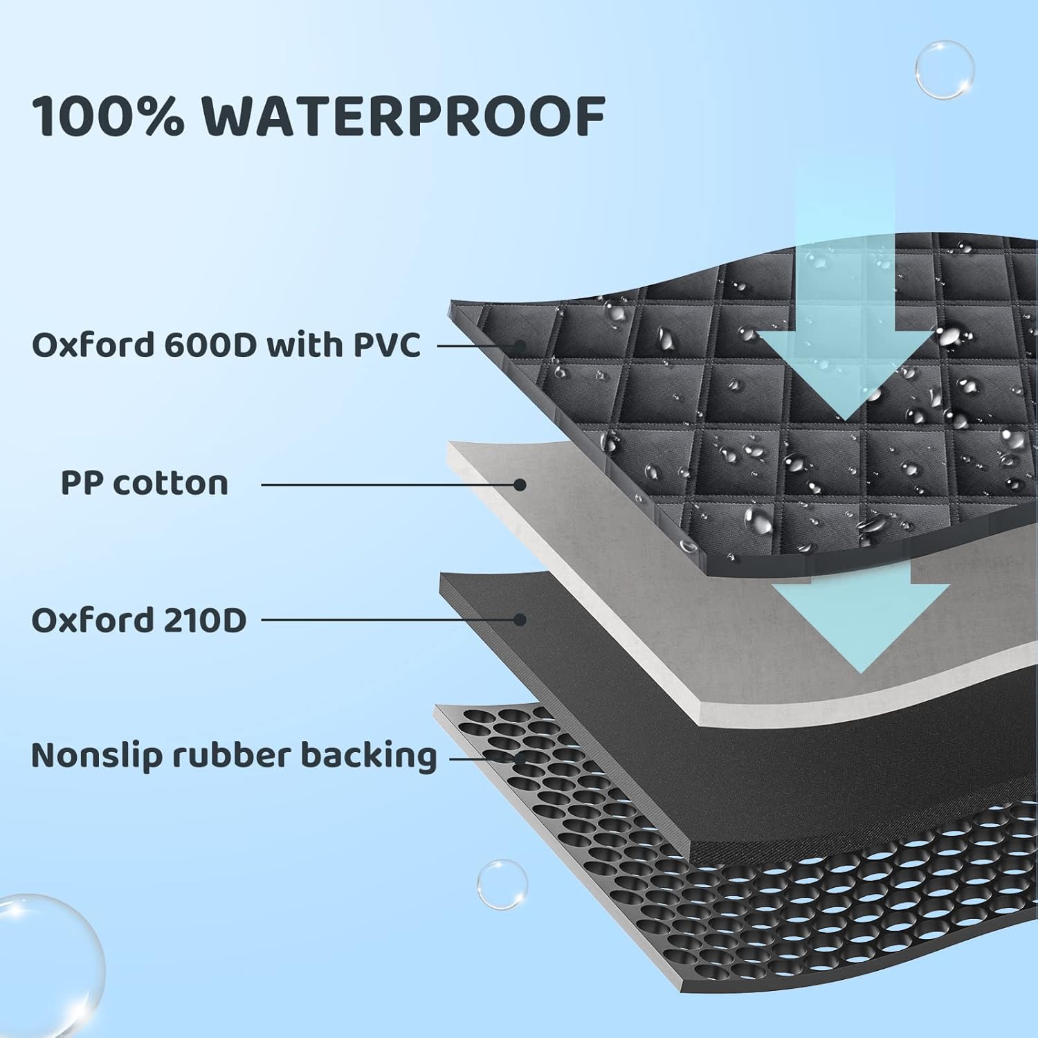 Waterproof and resistant material: The animal protector is made of 600D Oxford Fabric, PP cotton filling inside and non-slip silicone, the dog cover is 100% waterproof, does not stick to hair, and is resistant to all kinds of stains and scratches. The area in contact with the seats is non-slip and, once it is fixed to the headrests with its adjustable straps, and the anchors have been inserted into the seats, it will not move out of place.