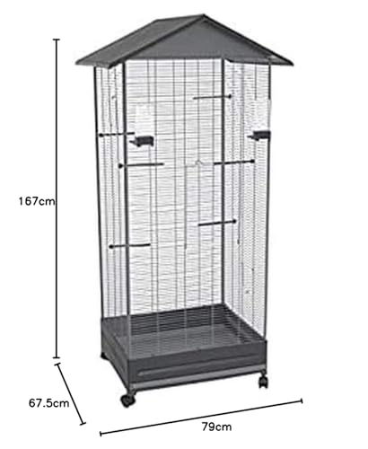 La pajarera Voltregà, está fabricada con rejilla metálica y techo, base y montantes en plástico, apto para exteriores e ideal para pájaros pequeños y medianos. Pajarera desmontable. Fabricado en España, con pintura epoxi sin plomo y plástico