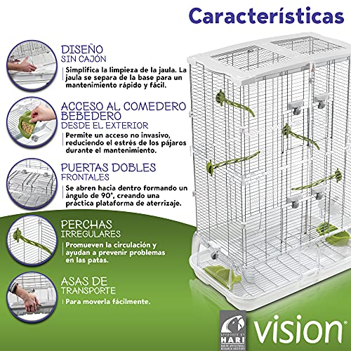 Gracias a su inconfundible y moderno diseño, Vision cambiará las perspectivas actuales de las personas que tienen pájaros y modificará las de aquellos que deseen tenerlos. Gracias a las ventajas especiales de este nuevo tipo de espacio, ninguna otra jaula para pájaros del mercado podrá compararse a Vision. Las Jaulas Vision se encuentran disponibles en modelos de jaula baja y alta.