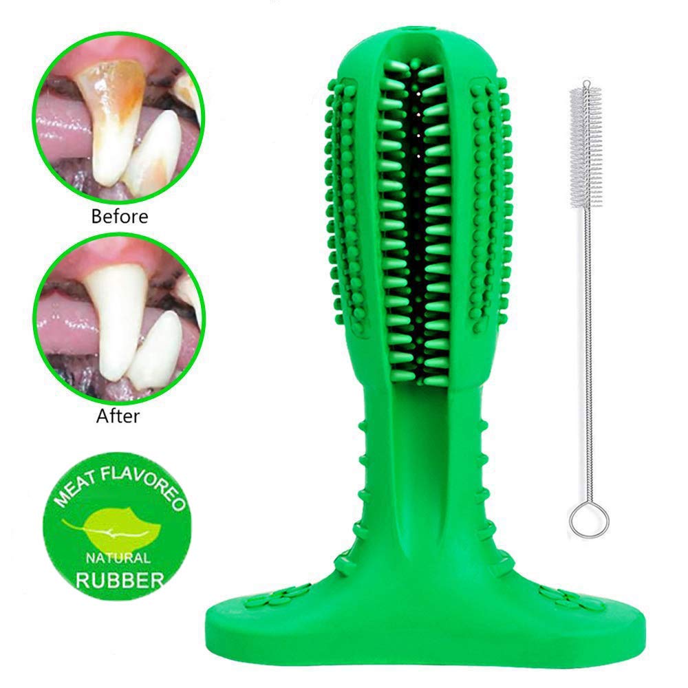 Material: el cepillo de dientes para perros está hecho de caucho natural, que no es tóxico y es ecológico. La textura suave diseñada para ser segura para las encías de su perro, no dañará la salud de sus perros y los ayudará a limpiar sus dientes y protegerlos de las enfermedades orales. Más resistente y no se masticará fácilmente.