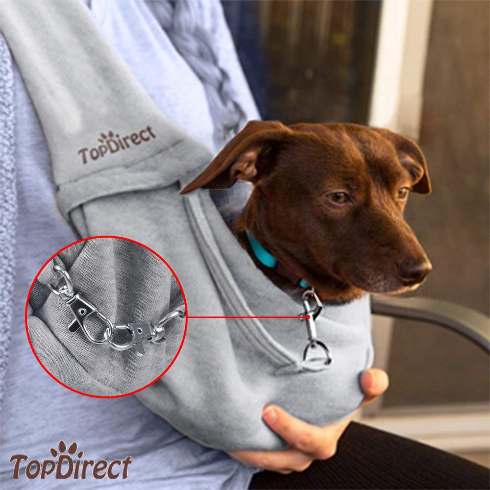 Viene con un archivo adjunto que va alrededor de la correa y sujeta el arnés para garantizar la seguridad de las mascotas. El portabebés reversible y manos libres cuelga sobre el hombro mientras la mascota descansa en la bolsa para que la mascota se sienta cómoda.
